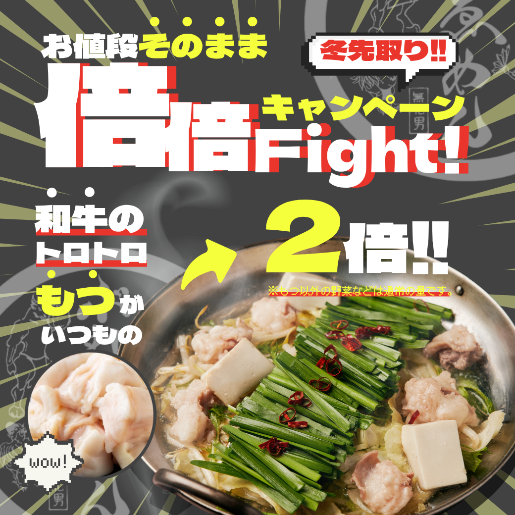 【倍倍Fight!キャンペーン】もつ鍋の”もつ”がお値段そのまま倍増♪